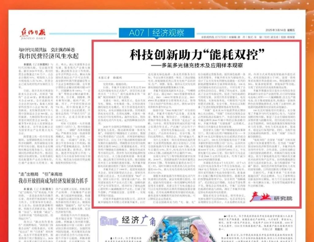 多氟多储能承建的100MWh储能电站投运消息荣登焦作日报