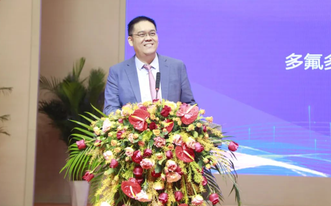 董事长李世江作《探求氟的无限可能》主题演讲。他指出,当门捷列夫遇上多氟多、化学元素周期表遇上数字化会产生什么样的化学反应,这是我们提出的时代课题,也是化工人必须要面对的必答题。多氟多经过30 多年的探索,从化学到电化学,从氟材料到新能源,从氟基新材料到半导体,再到原子能工业和人类大健康产业,不断创造奇迹。氟锂结合,叩开新能源大门,让新能源汽车助力美好出行。氟硅分合,奠定半导体行业基石,助力“中国芯”。氟磷牵手,低品位氟硅资源高质高效综合利用成为现实,挺起民族工业脊梁。氟硼互动,为原子能工业和人类大健康贡献智慧。