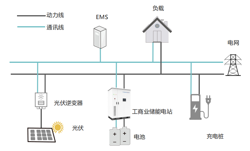 智能液冷/风冷工商业储能系统,集成铁锂电池、BMS、高效率PCS、EMS、智能液冷温控系统、消防系统以及配电系统于一体,可提供削峰填谷,电网频率调节,电力扩容、备用电源等功能服务。可灵活的部署在各种工商业园区、光储充一体站、快充站、医院、学校、矿区、机场、加油站等场景。